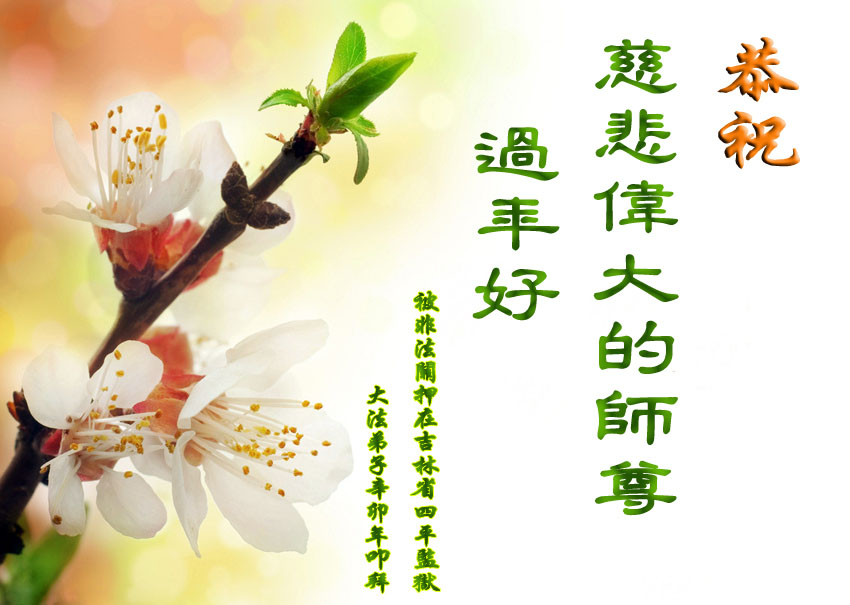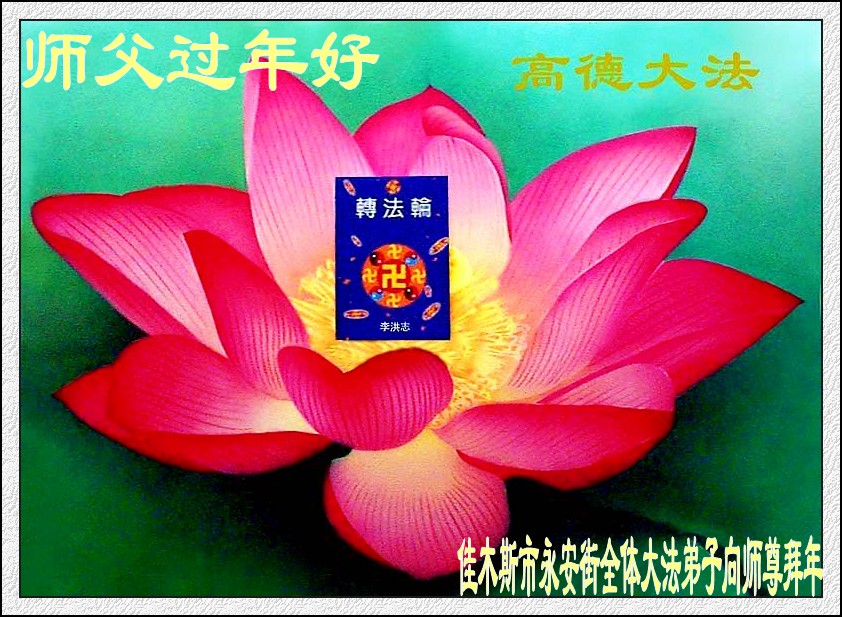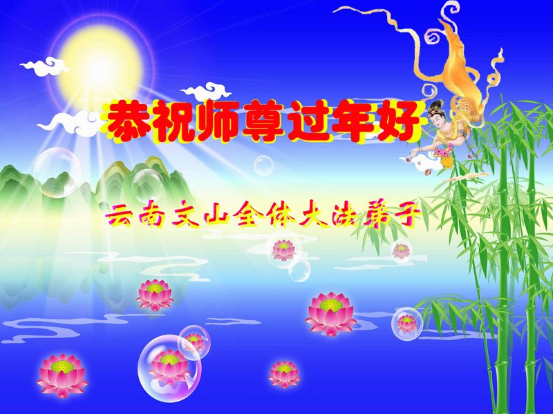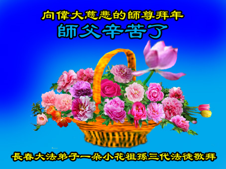 师尊您辛苦了!为了救度更多的众生,为了弟子们都能够圆满,在证实法、救度众生的修炼路上,您牵着弟子的手,慈悲呵护着弟子走过了一年又一年。人类的语言无法表达弟子对师尊的无限感恩。这些年里,每次提笔写贺词恭祝师尊好时,都是伴随着感恩的泪水而成文。弟子只有更加精進的做好三件事,才能不辜负师尊的慈悲苦度,在新的一年里,用正念正行来回报师尊给予的所有。在此代表被非法关押在公主岭监狱的外甥、黑嘴子女子劳教所的姐姐向慈悲伟大的师尊拜年!恭祝师尊过年好!