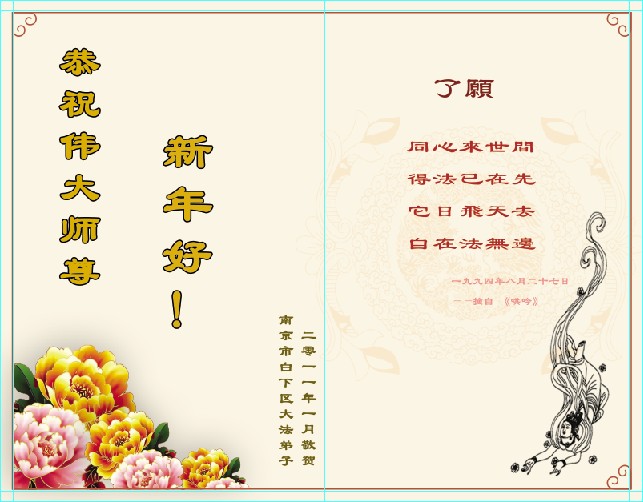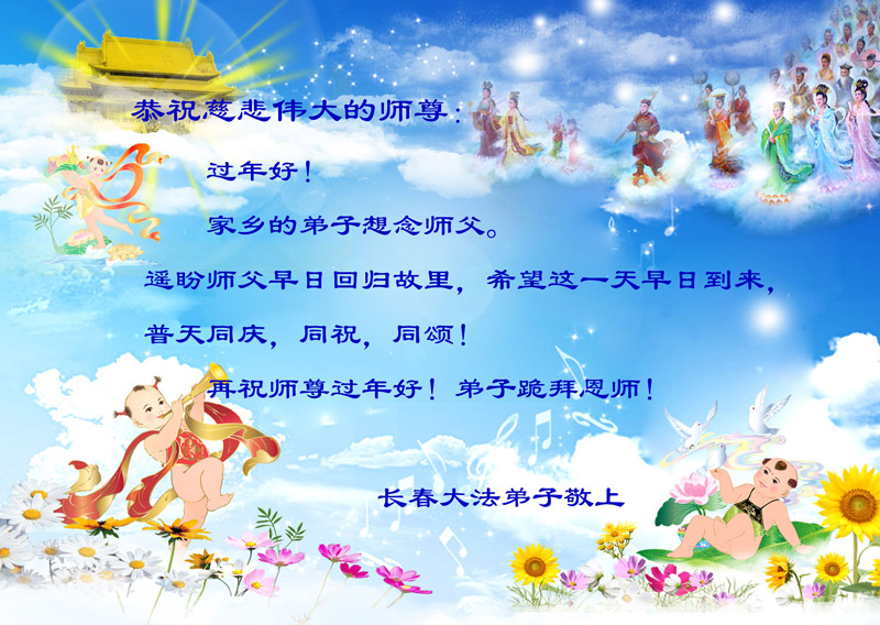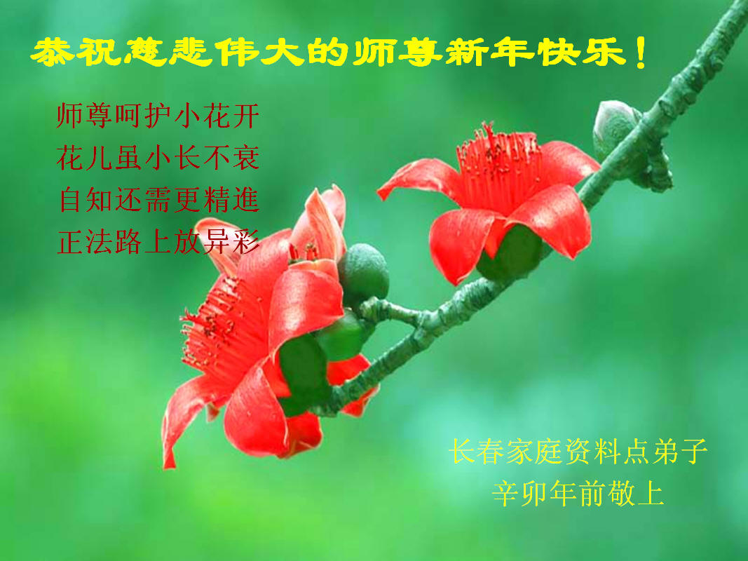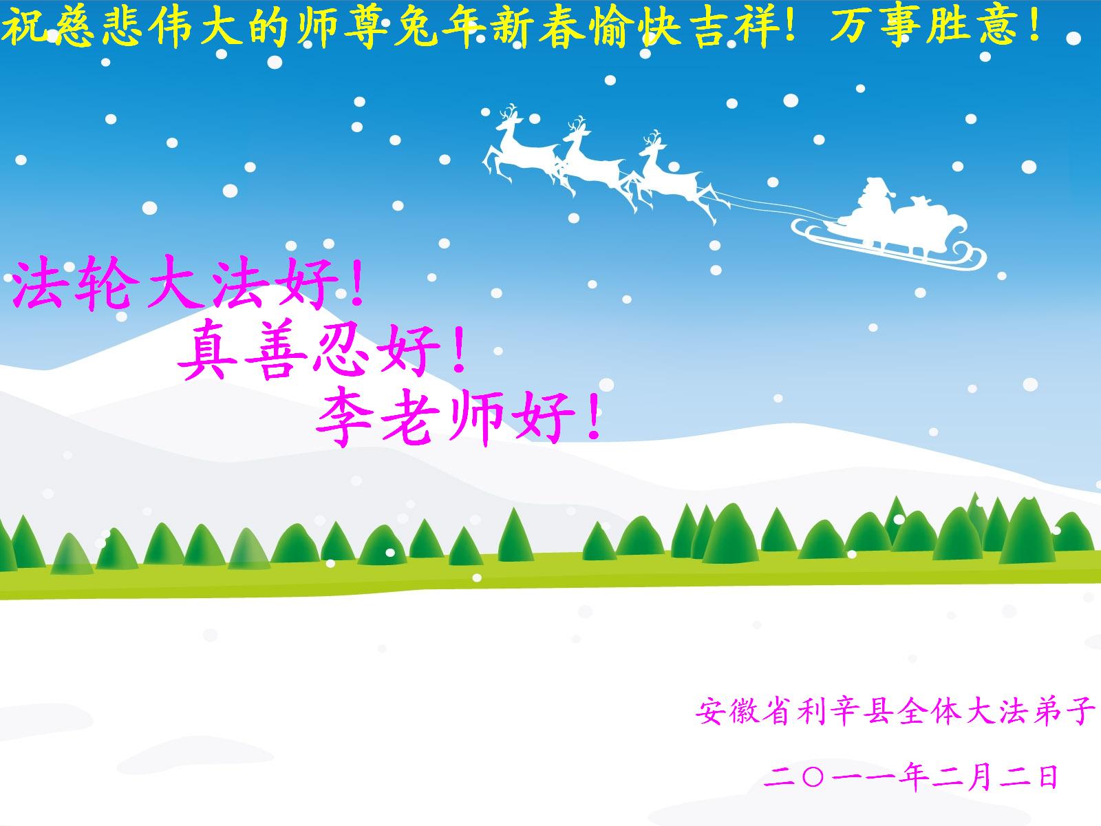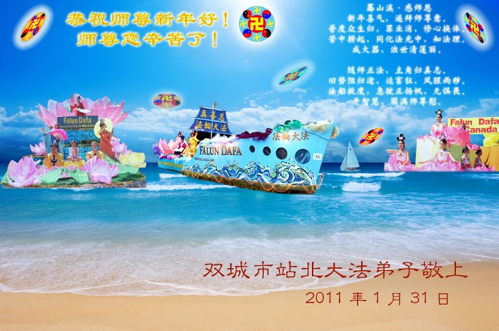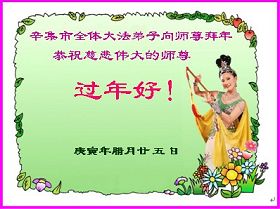 <英文版: http://www.clearwisdom.net/html/articles/2011/2/5/123076.html>大陆大法弟子恭祝师尊新年快乐(十三,236地)