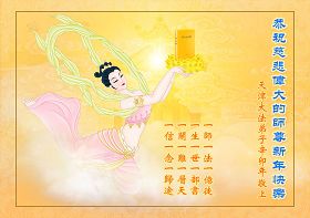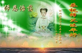 弟子非常想念师父,此时我的眼中已含满了泪花,弟子没有亲眼见过师尊,但弟子在狱中最困难的时候,梦中见到了师父,慈悲的师父您鼓励着给弟子手中的碗里加糖,师尊挥手间让我看到了头顶光环身着袈裟步态稳健的大罗汉,这一幕伴随着激励着弟子又稳健的走过了正法的十年,随师走到了今天。人间的语言太轻,无法表达弟子的感怀心愿。在这里弟子跪拜叩上,给无限慈悲的师尊拜年!祝师尊新年好!祝愿师父新年快乐!师尊给予弟子的一切是自身生命都无法回报的,精進修好自己,抓紧救度更多的众生,这是对师尊最好的宽慰!是对自己未来的永恒负责!正法已接近尾声,众多迷失的生命还没有被解救,弟子知道自己的使命,救人!救人急!救度众生的时间对我们来说已经很有限了,抓紧救度与我们一样抛却神的光环来到混浊世间的生命,唤醒他们是大法弟子的使命。完成师尊所要的,兑现大法弟子的誓约!