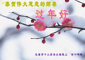 我们学法小组全体同修从内心深处向师尊问好:师尊过年好!师尊辛苦了!师尊把我们从地狱中捞起,又传大法救度我们,我们要坚信师父,坚信大法,再精進,走好最后的路。