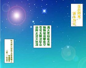 风雨中,我们走过了十一个年头,修炼中,我们去掉了很多人心;魔难中,我们变的成熟起来,助师正法中,我们救度了更多的众生。但是,我们还有很多的不足,今后在助师正法的尾声中,我们更要理智、清醒,我们要放下自我,配合整体;我们要多学法,明法理,用我们的正念和行动救出被邪党非法关押的同修,加大力度救众生,履行好我们的誓约和使命。我们要让师尊欣慰,让众生有望,我们要的是整体升华、整体提高和飞升。