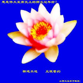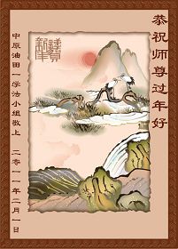 新的一年即将来临,我们全家及在监狱被非法关押的女儿,和学法小组的大法弟子给师尊拜年!我们在师尊的慈悲呵护下走过了反迫害的十一年。回顾走过的路,每一步无不凝聚着师父的艰辛。在新的一年里,要继续做好师父要求的三件事,勇猛精進,圆满随师还。
