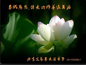 慈悲伟大的师尊啊,您把我从地狱中捞出洗净,您呵护我家三代人学会真、善、忍做好人。师尊啊,您的再造之恩洪大至极。师尊啊,弟子的感恩之情无以言表,只能化作泪水铸成金刚志,助师正法是我的使命,我决心做好师尊要求的三件事,放下生死多救人。