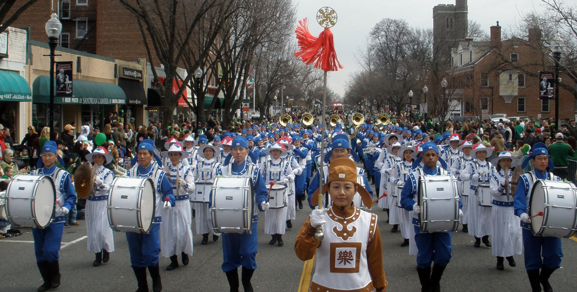 【明慧网二零一一年三月十四日】(明慧记者冯道生美国新泽西报道)受美国新泽西州莫理斯郡(Morris County)圣•派翠克节(St. Patrick's Day)游行组委会的邀请,由大纽约地区法轮功(又称法轮大法)学员组成的纽约天国乐团,再次参加了该州这个最大规模的游行,成为一百二十一个游行团体中最引人瞩目、最受欢迎的团体。