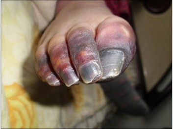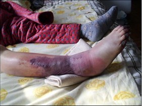 经过药物迫害后,宋会兰的右脚开始发黑发肿,不能行走,瘫痪在床