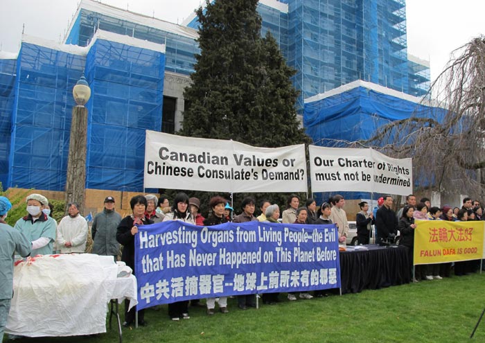 二零一零年十月十九日,加拿大卑诗省上诉法院裁定,温哥华市政府利用城市附例禁止法轮功学员在中领馆前展出抗议迫害的展板,是不符合加拿大宪法的,违反了宪法授予的言论自由权利。上诉法院并要求市政府在六个月内修改城市附例,使其符合加拿大宪法。
