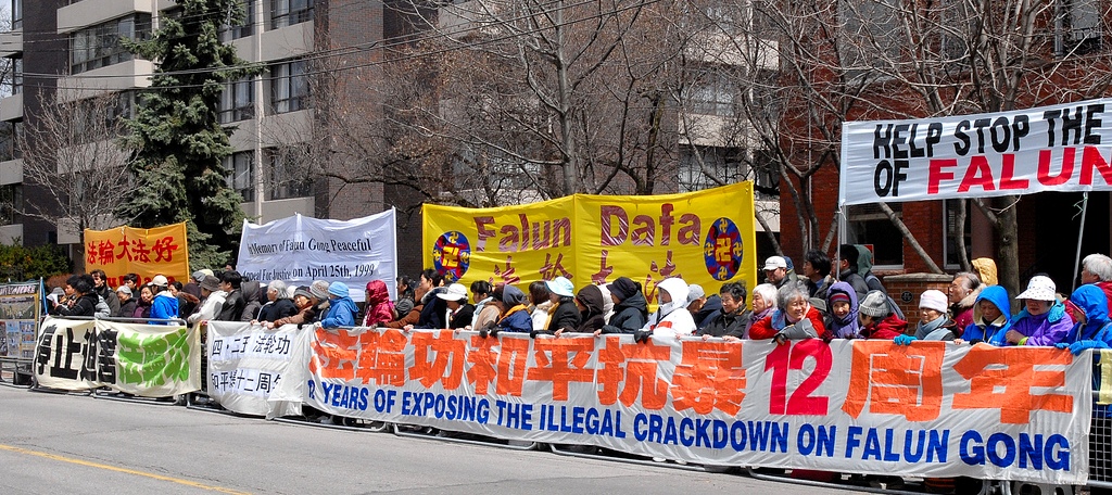 【明慧网二零一一年四月二十三日】(明慧记者章韵多伦多报道)二零一一年四月二十一日中午,法轮功学员在加拿大多伦多中领馆前集会。如同一九九九年四月二十五日发生在北京的万人上访,他们没有激烈的行动,没有喊口号,而是理性平和地向路人讲述他们的故事,揭露中共对法轮功长达近十二年的迫害,并呼吁世人共同制止这场迫害。