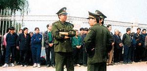 •一九九九年四月二十五日,八点左右,警察带领学员围中南海