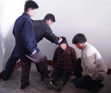 ![]() 酷刑演示:穿着皮鞋使劲碾踩法轮功学员 |