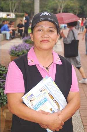 重获新生的李香兰,每天只要做完生意,就从新店乌来区来到一零一大楼,向游客讲述法轮功的真相,爽朗的笑声、圆润的双颊,亲切问候每一位路过的游客和行人,她一心一意想把法轮大法的美好分享给每一个人,与她交谈过的人都难以置信她曾是一个重病患者。