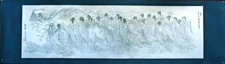 第二场笔会主笔的是业余爱好书画的同修们和东北师范大学艺术系的同学们,表达对师尊的感恩,展示自己的艺术才华。最后共同汇成35米长卷,恢弘壮观。