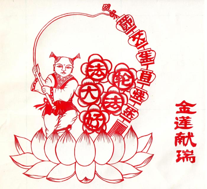 【庆祝513】手工剪纸:真善忍;金莲献瑞