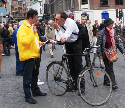 【明慧网二零一一年五月十五日】(明慧记者林彤丹麦哥本哈根报道)二零一一年五月十三日,对于全世界的法轮功学员来讲,是生命中最珍贵的日子。十九年前的这一天,慈悲、伟大的师尊把宇宙大法带到了人间。从此以后,亿万人结束了迷茫人生,明白了生命的真正意义,亿万人走上了同化宇宙“真、善、忍”的修炼道路,生命获得了新生。因此,许多大法弟子把这一天作为自己的真正生日。今年的五月十三日还是师尊六十华诞。全球的大法弟子用各种形式欢庆这个不平凡的日子,向为救度弟子与世人操尽了心的师尊,祝一声:“师父生日快乐!”道一句内心深深的感恩。