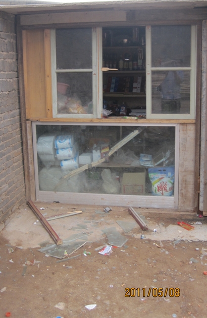 二零一一年五月八日下午四时左右,在辉县市百泉镇武装部长吴同国的指使下,百泉镇乡政府人员李全清、王海啸一行十几人,身着便衣,开三辆面包车到大官庄村法轮功学员李拴运的小店铺,砸破门窗,非法将李拴运强行塞进车内带走。李拴运的女儿上前阻拦,被两名便衣扭住胳膊、动弹不得;李拴运丈夫闻讯赶到极力阻拦、被中共邪党人员打翻在地……腿被打伤。
