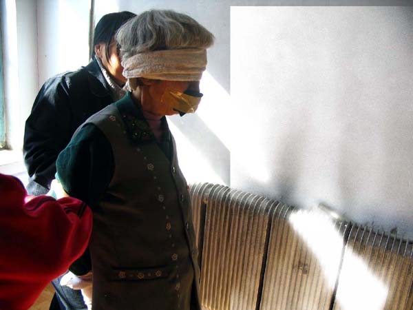十月九日,恶警杨小林给苗培华戴上手铐,将她带到恶警医院作胸透心电图,检查结果为心脏病。苗培华不停的喊“法轮大法好”,不配合打针做钡透,结果没有做成,还是被劳教所扣了二百多元钱。十月十日晚,所长牛学莲来了,苗培华反映她被非法关进来时体重一百三十多斤,现在却八十多斤,这是被迫害的结果。结果第二天一早,恶警代秀峰带着王芳,刘建慧,李妮三个警察来了。她们把门窗关上,帘子挡上,用胶带封住她的嘴,宽胶带在头上连着缠了五、六圈。把苗培华五马分尸式的架起来。要强制拉苗培华去卫生所检查,并说让你告,我们有时间奉陪。并将缠在她头上的胶带硬撕下来,结果头发被撕下来很多。恶警们完全没有人性的大笑,连讽带刺的说风凉话。
