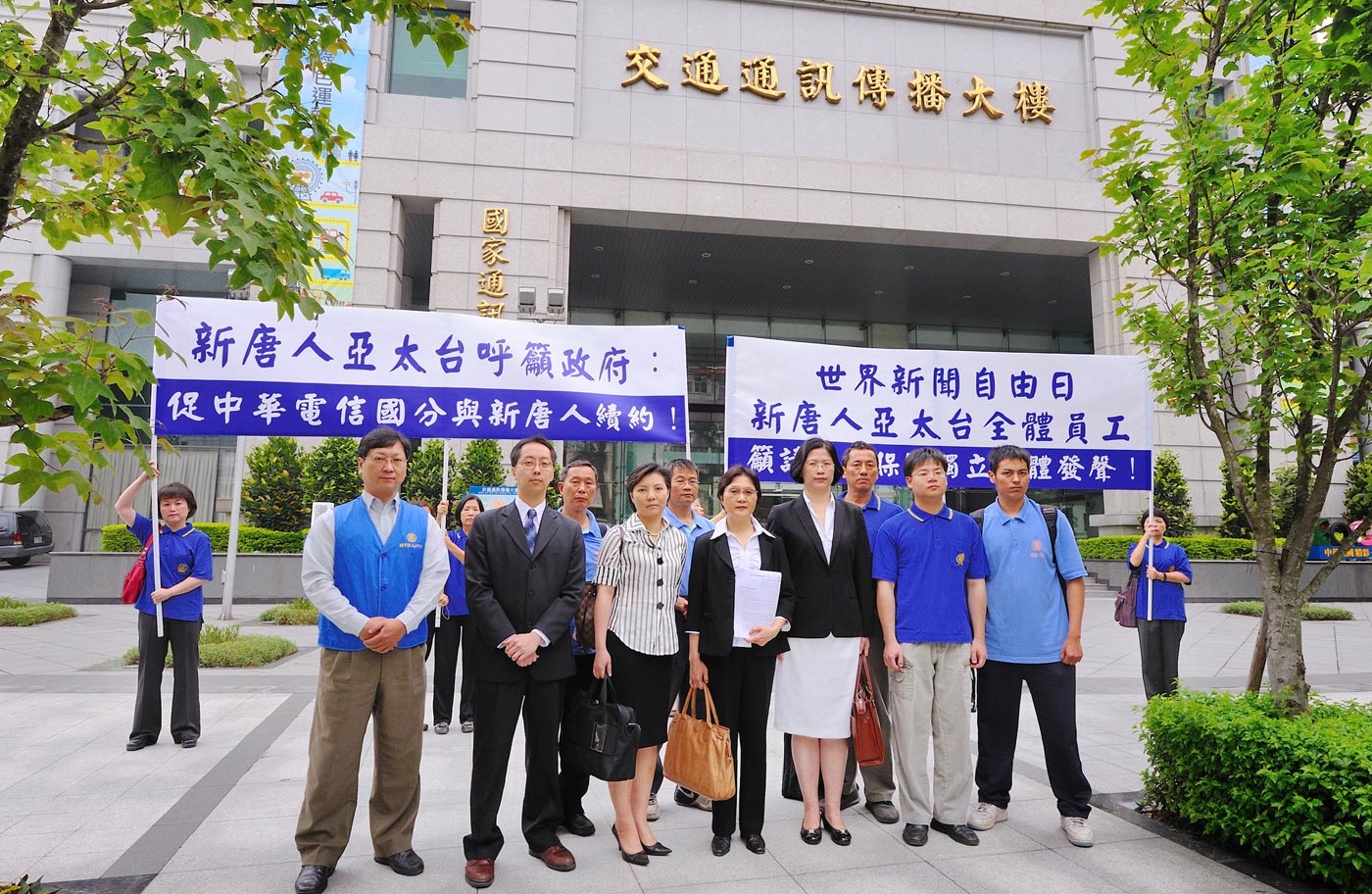 ![]() 新唐人亚太电视台总经理张瑞兰率十多名员工,二零一零年五月三日上午向国家通讯传播委员会(NCC)提出申诉。 |