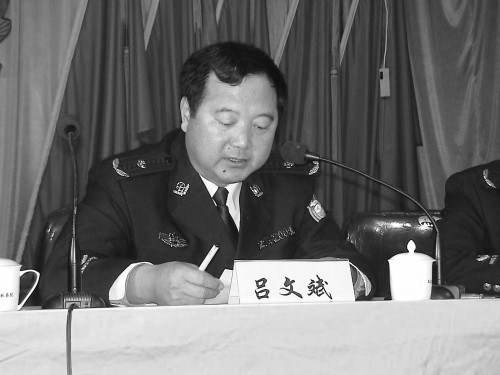八月下旬,本溪劳教所所长吕文斌、政委毕友忠、管教所长刘士本、管理科科长孟立新到三大队二分队检查工作,发现该队法轮功学员巩发久不但在纸上写“法轮大法好”还公开炼功,恶警们恼羞成怒。当着二分队劳教人员的面,吕文斌、刘士本、毕友忠、对巩发久拳打脚踢,大打出手,旁边还站着专门好打人的孟令鑫,因为巩被几个恶警围住殴打,孟令鑫已经伸不进去手了。