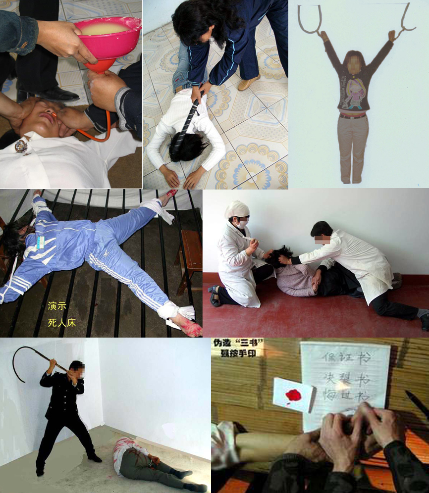 ![]() 酷刑演示:窒息灌食、电棍电击、上大挂、死人床、注射不明药物、毒打、强行按手印 |