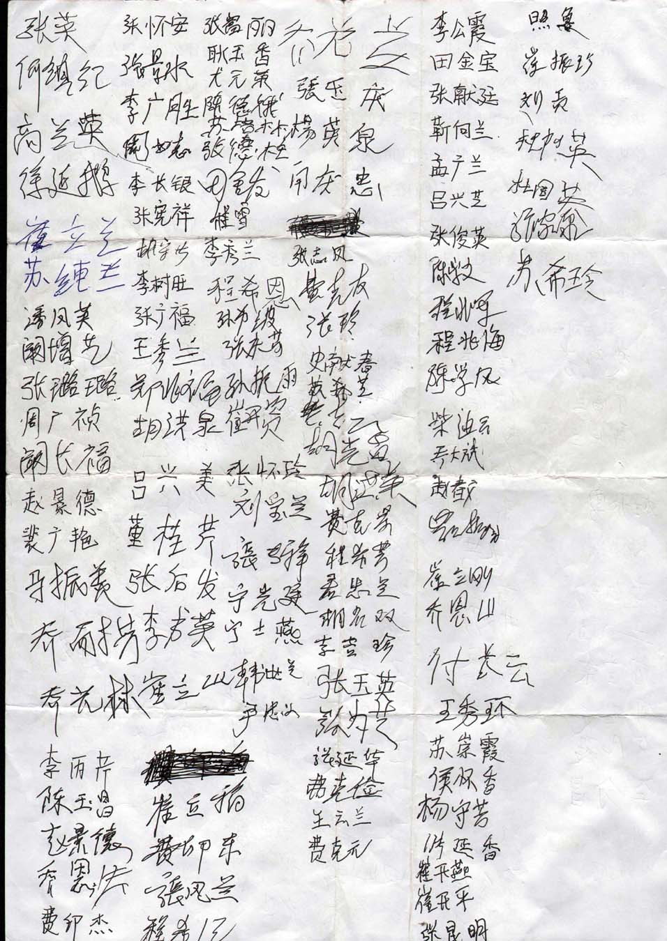 在田广青留下的证据中,除了包含法轮大法及创始人在全世界(包括中国大陆)获得的褒奖状一百一十六份以外,还包括刘玉晶一家人所生活的兴隆村村民三百多人力保刘玉晶“是个好人”的签名笺。