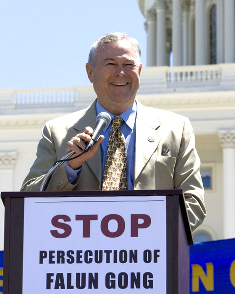 美国会众议院监察委员会主席、众议院外交委员会资深众议员丹纳·罗拉巴克(Dana Rohrabacher)在集会上发言。他表示,法轮功学员让美国民众来关注在中国发生的残酷迫害,关注在中国成千上万的人被虐杀、被非法关押和劳教,而这一切是由中共所控制的当局所做的。让美国人认清这个现实是非常重要的。如果允许这种邪恶势力继续存在,不去挑战它,那某一天邪恶势力会来到这里。
