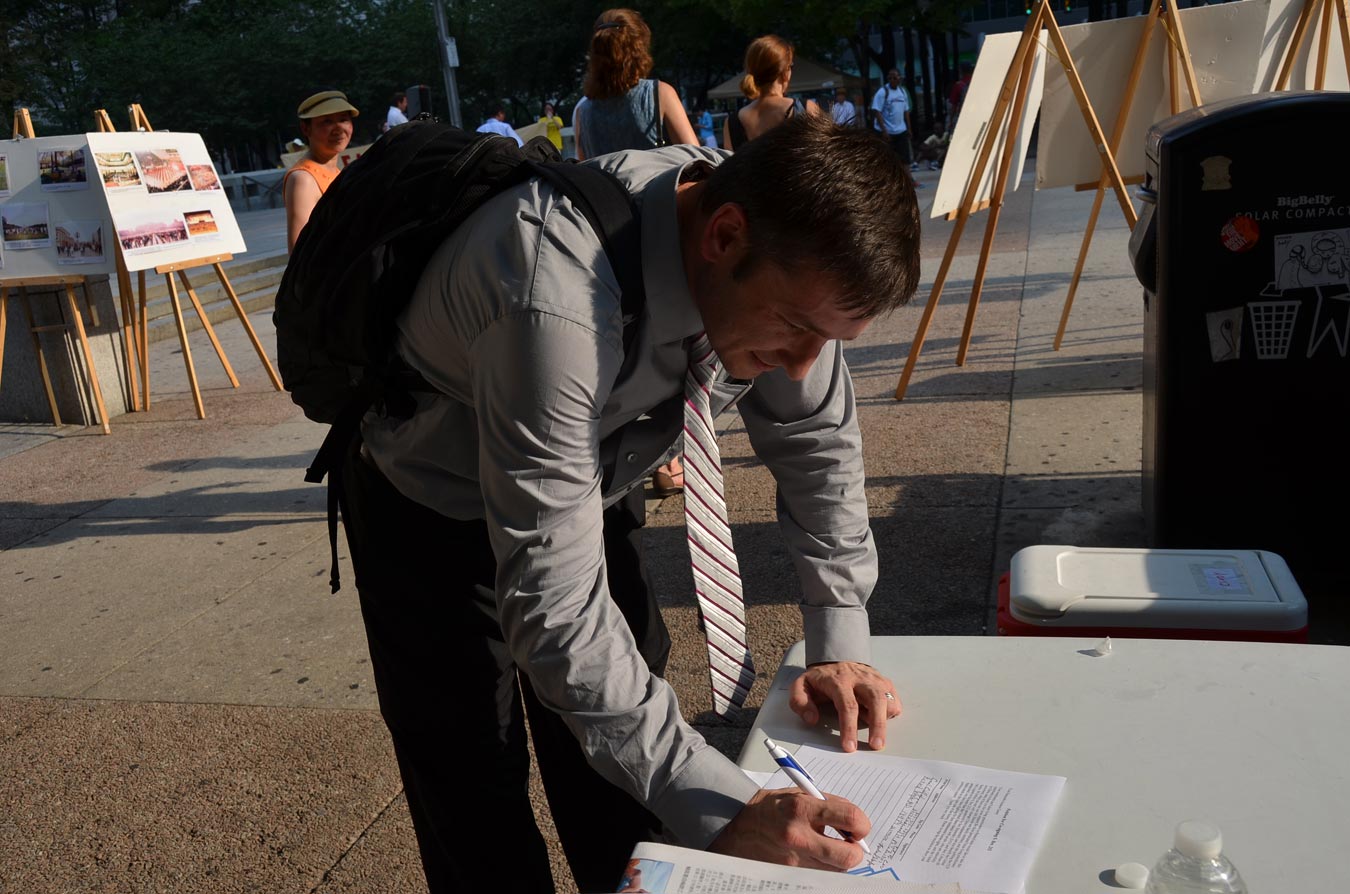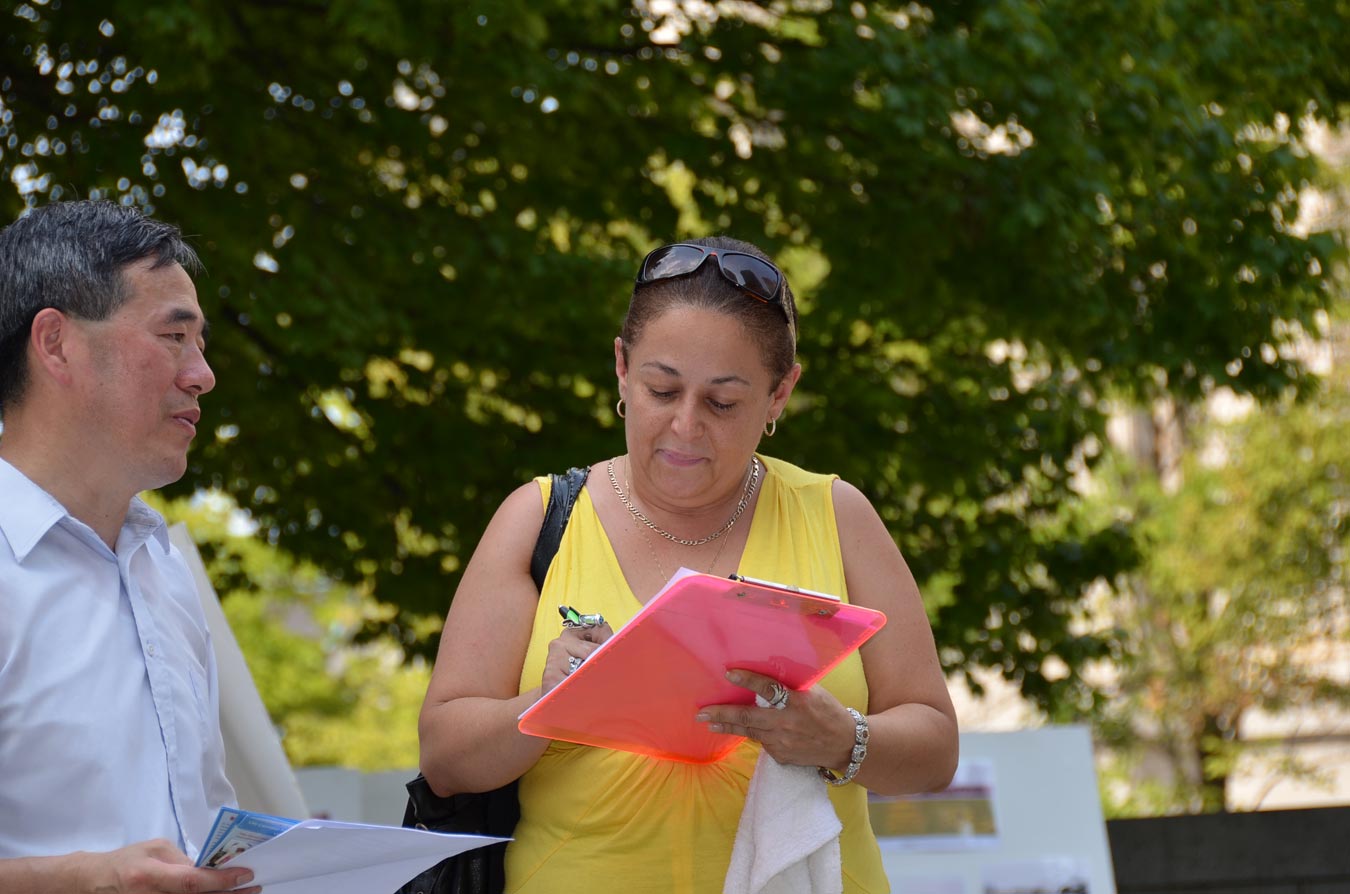 ![]() 集会现场民众在了解法轮功真相和签名支持法轮功反迫害 |