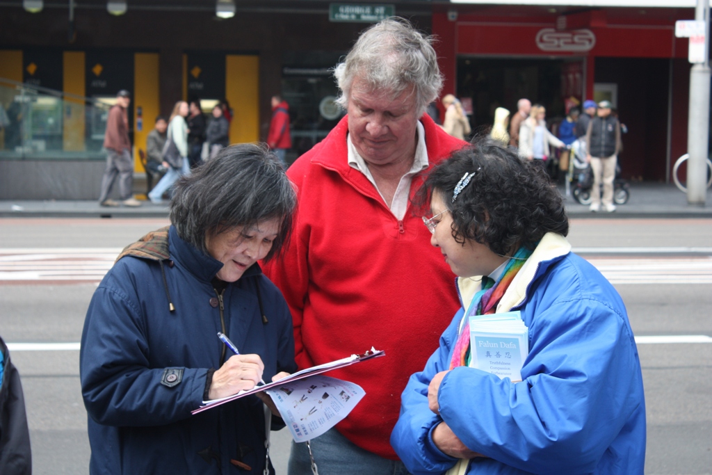 电台评论员和人权活动家史蒂芬•辛(Steven Sim)说:“贸易是恶毒的武器,是导致国际社会对中共的邪恶本质视而不见的原因。他呼吁澳洲人民给当地政府、国会议员施压,让他们对中国的人权采取坚定的立场,呼吁中共停止对法轮功的迫害。