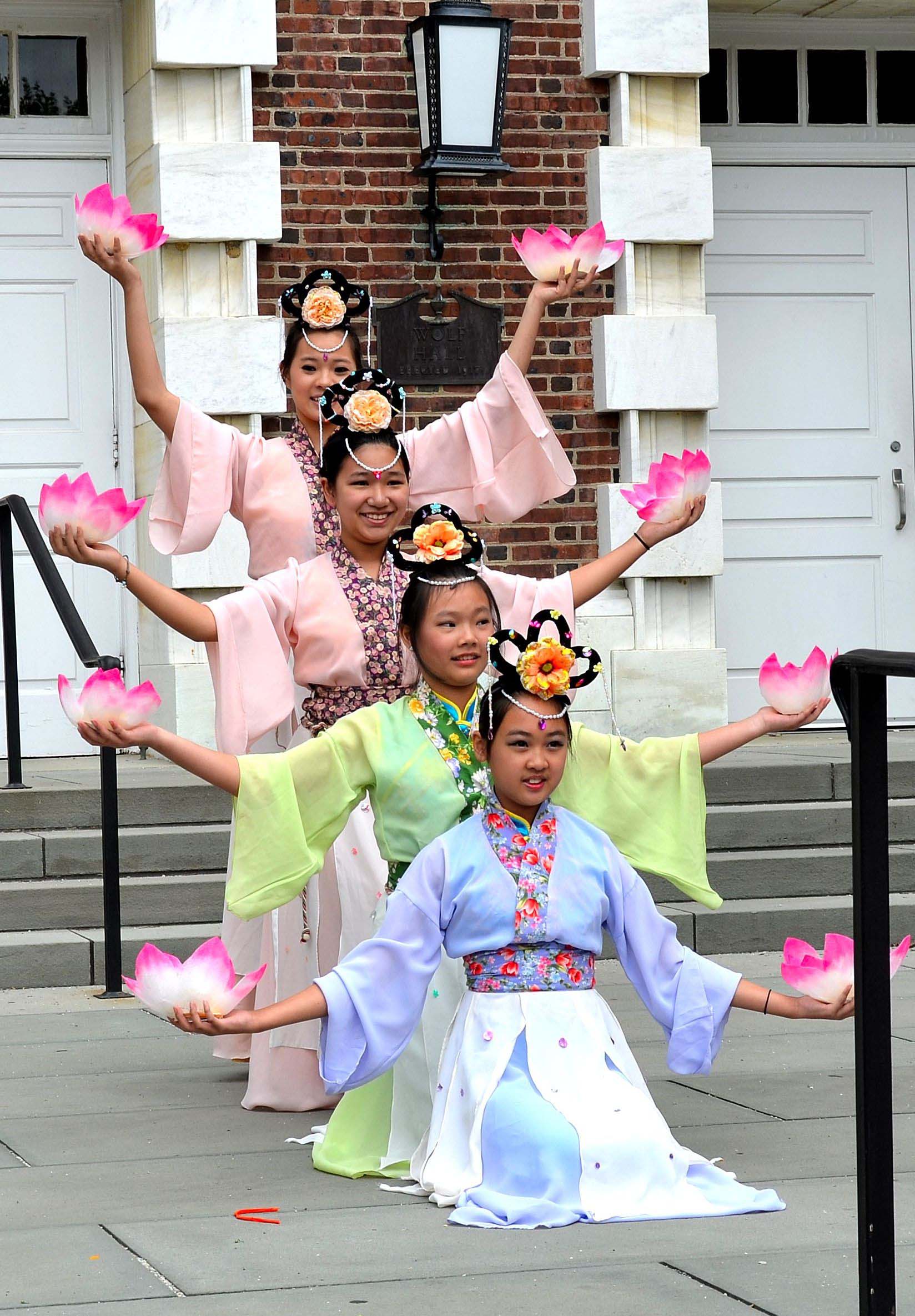 ![]() 大费城明慧学校舞蹈队在表演莲花舞。 |