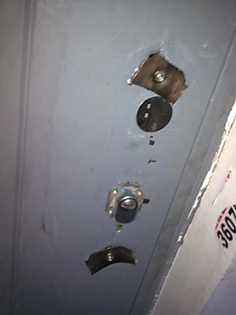 ![]() 家中被抄 | ![]() 家中被抄 | ![]() 被锯坏的门 |