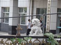 在所谓的“法庭”里,向阳区法院有审判长赵玉斌、陪审员、书记员、法警及合议庭成员共十三人,公诉人为向阳区检察院公诉科的江明川(音),只有六名旁听家属。