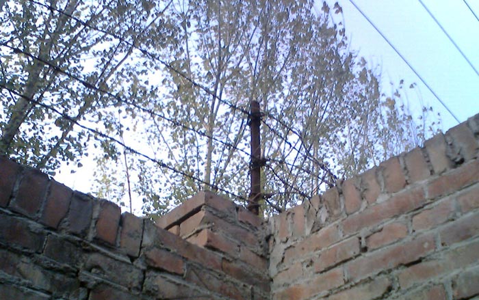 ![]() 带铁丝网的洗脑班高围墙 | ![]() 洗脑班大铁门 |