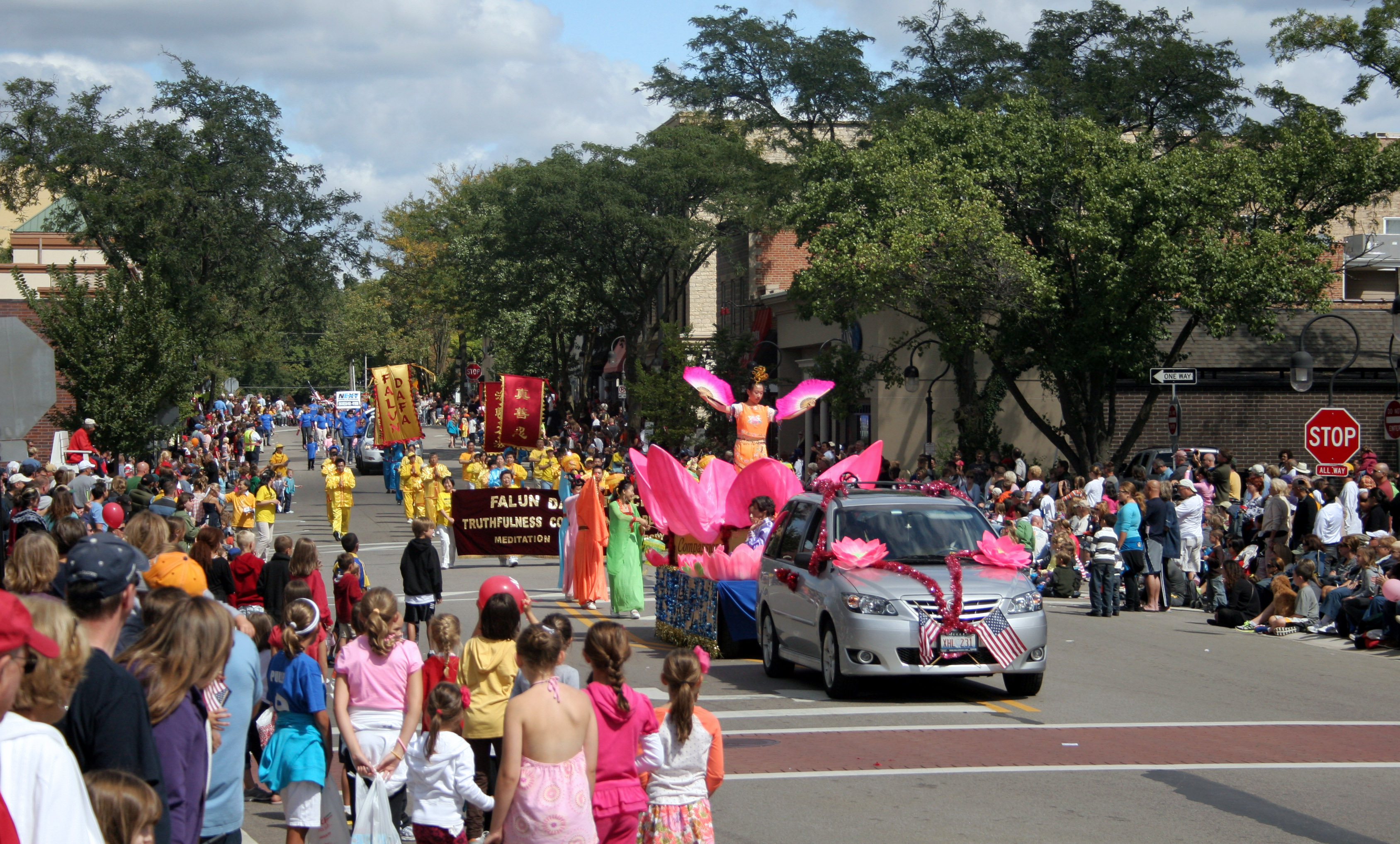 【明慧网二零一一年九月六日】二零一一年九月五日,美国芝加哥市西郊的瑞柏市(Naperville)举行了一年一度的劳动节游行。法轮功学员参加了游行,将法轮大法(又称法轮功)的祥和与美好展现给这里的民众,人们纷纷表示赞许和支持。