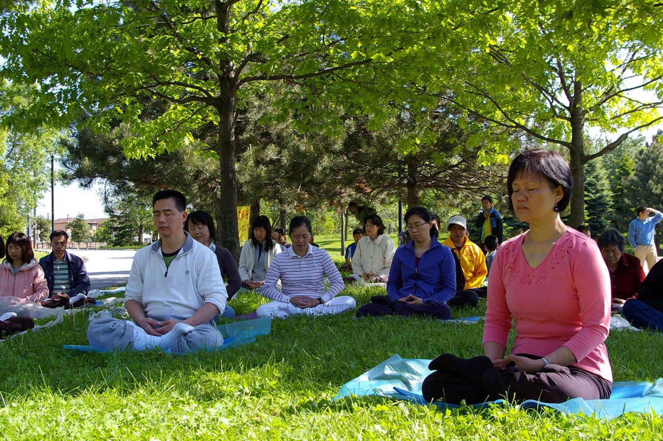 第一次在炼功点和大家一起打坐,他双盘了四十五分钟。第二次张先生便能按炼功音乐的指引,打坐一个小时。他说,在炼功点炼功,不但气氛好,能量感强,而且是一个互相交流的好机会。“我是在这个炼功点第一次知道怎么炼法轮功,并真正开始了修炼。”