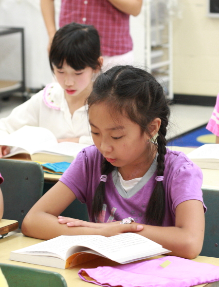 八岁的Sunny因为家住离多伦多约一小时车程的密西沙加,所以以前一直没能参加明慧学校暑期班,但她一直都很盼望能上明慧学校,今年终于如愿以偿,第一次参加了明慧学校的暑期班,她非常高兴,也很兴奋。她说:“每天都学法、炼功,在家里是做不到的,在学校还能做到了双盘,开始有点痛,知道是消业,后来就越来越舒服了。中文进步最快,晚上回来能跟外婆读《转法轮》了。”她的外婆说:“她每天从明慧学校回来,晚上都能给我讲一个传统故事。”