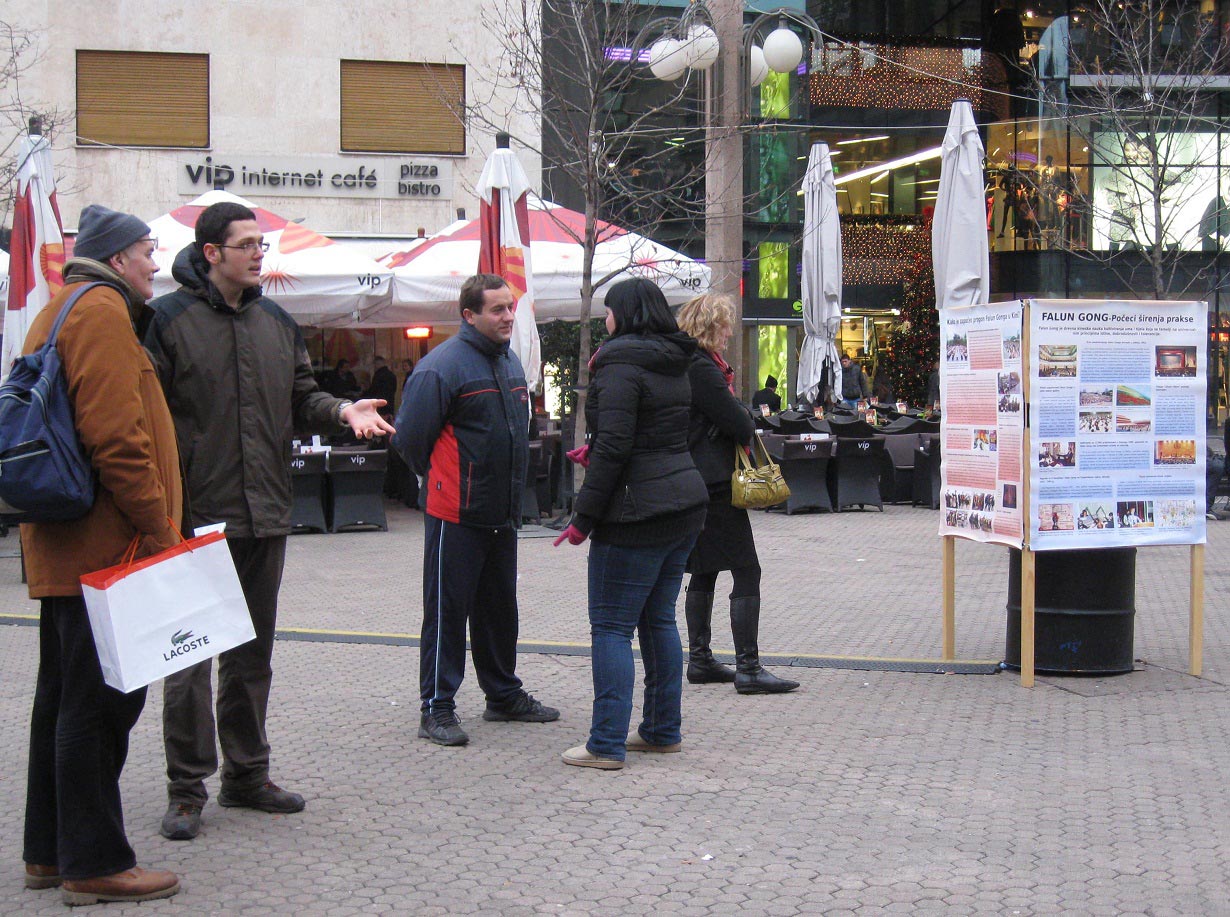 ![]() 法轮功学员在市中心广场讲真相,反迫害 |