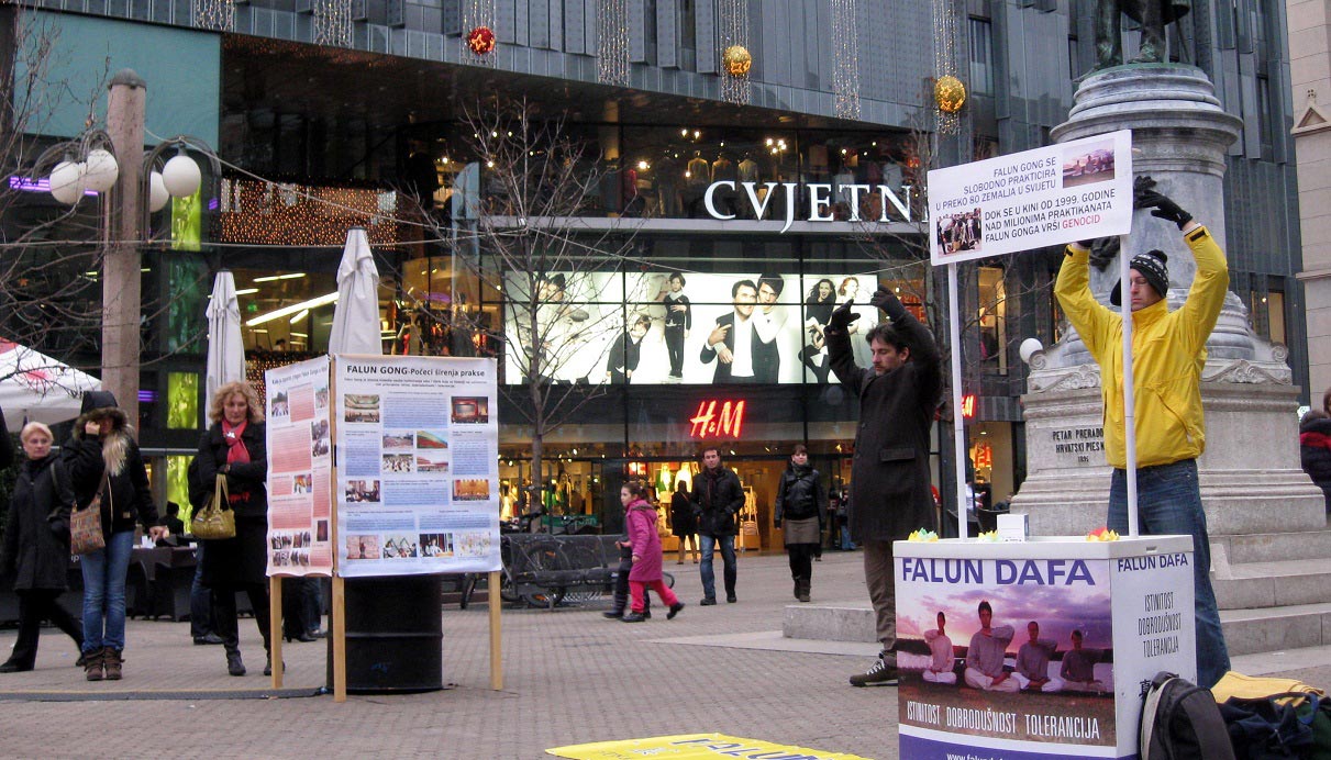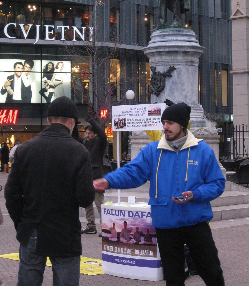 二零一二年一月五日,退党服务中心义工走进首都萨格勒布市华人商品批发市场,给里面的各个华商摊位分发《九评共产党》和法轮功真相资料,受到商户的欢迎。一些拿到资料的华人,爱不释手,来了业务忙里忙外,但资料揣在身上或攥在手里,得空就看。义工发完一圈回来,接着给人们讲为什么要退出中共相关组织,劝一个退一个。有些华人,不等劝,上来主动说:我也退。共产党完了,大势已去!