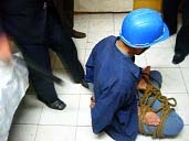 ![]() 酷刑演示:双腿盘上再用绳子捆住 |