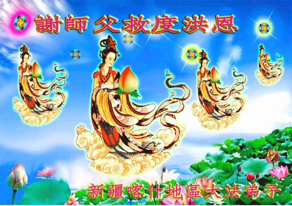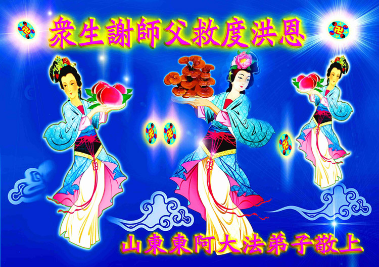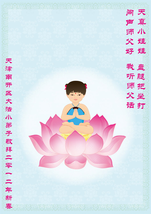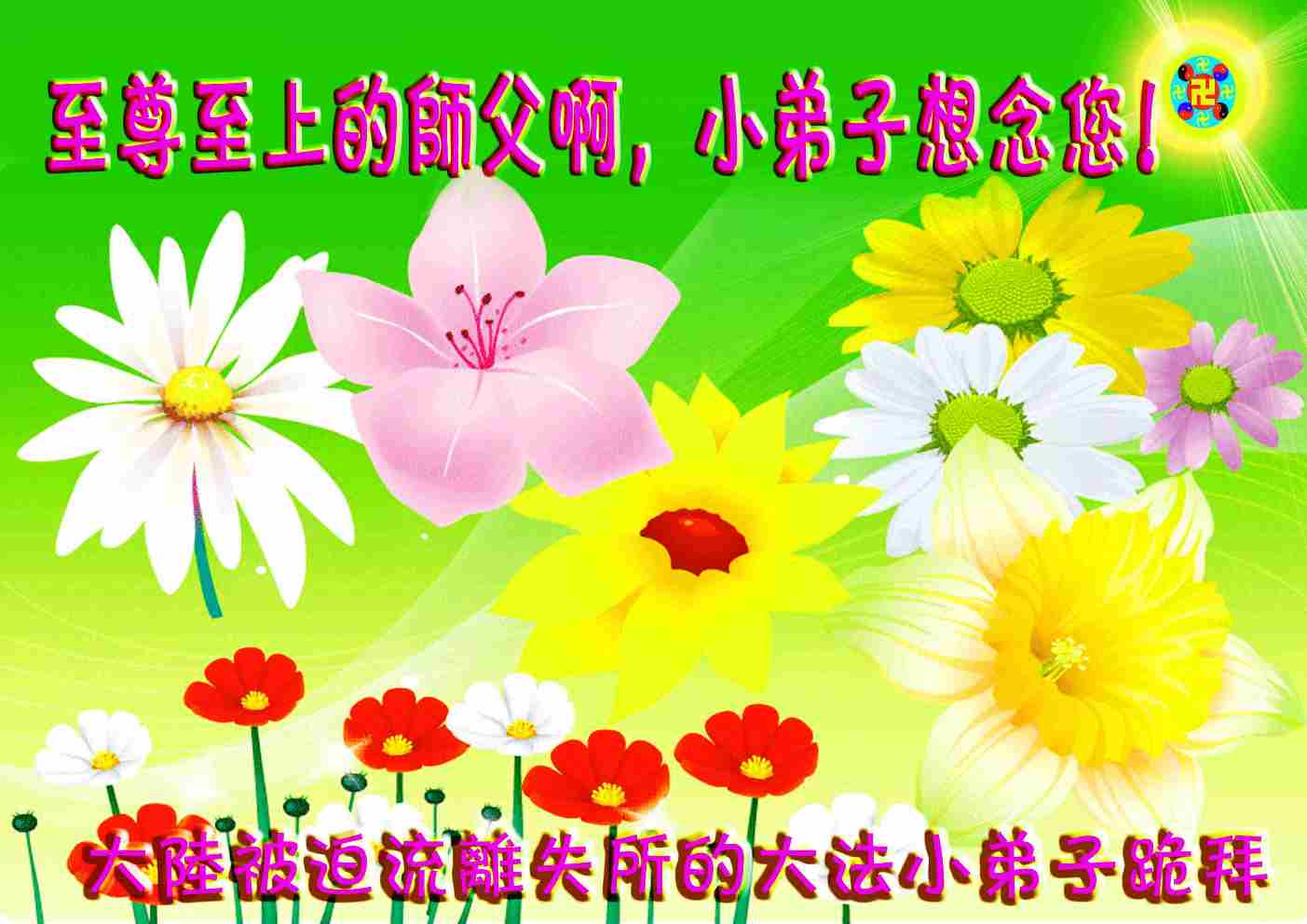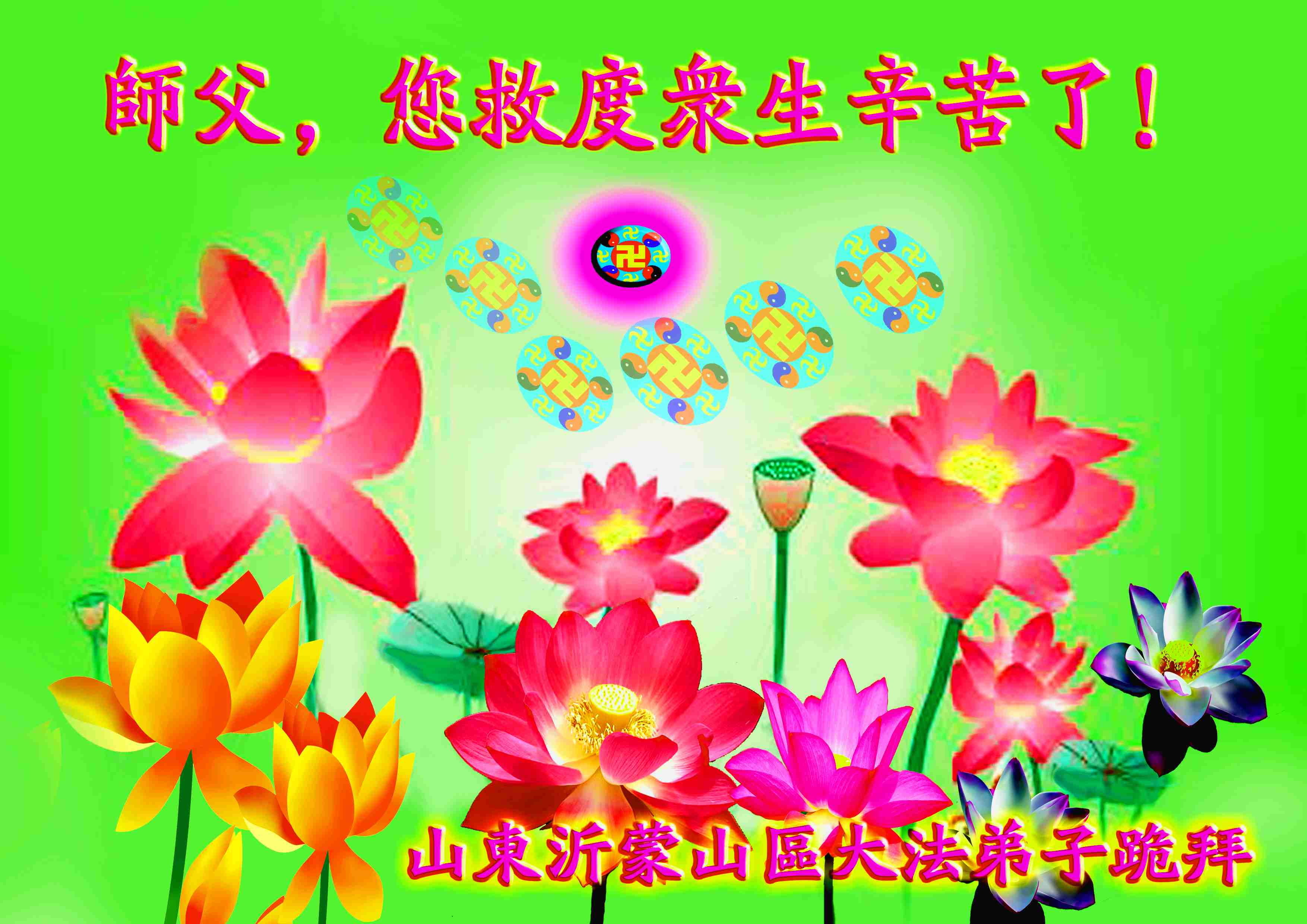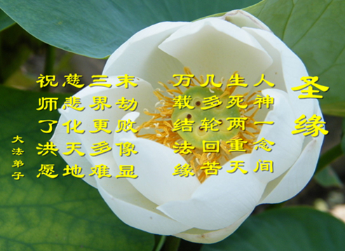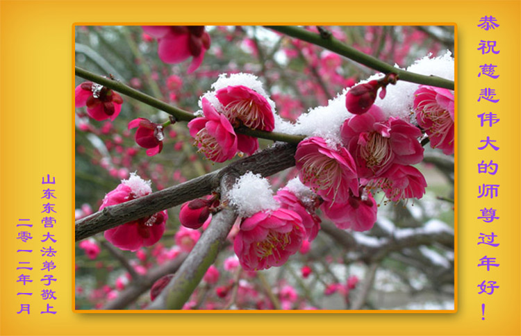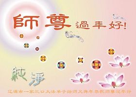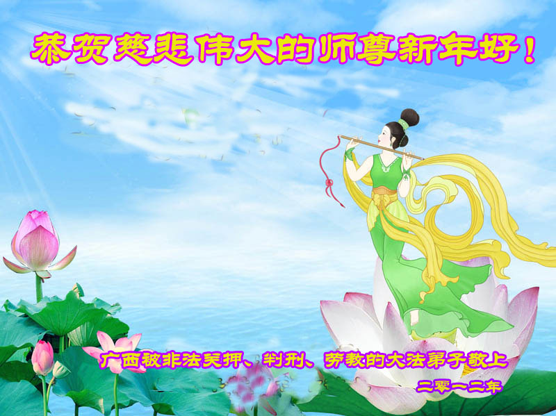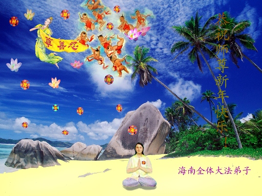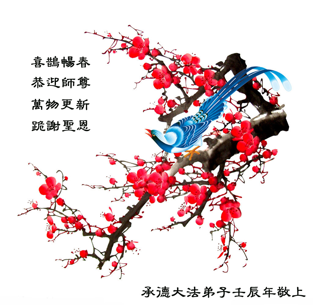 尊敬的师父好!师父辛苦了!您从地狱把弟子捞起洗净,给予弟子的,我千言万语都表达不尽对您的感恩。我在修炼的路上坎坎坷坷走到今天,我深知没有您的呵护,我就没有今天。我一定坚修大法到底跟师父一起回家,请师父放心。在新的一年里我一定勇猛精進,做好三件事。再次祝师父新年好!