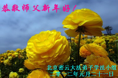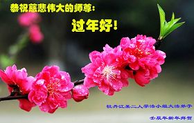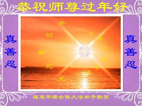 我代表我们学法小组的全体大法弟子:祝慈悲伟大的师父,新年快乐,一切如意。感谢师父救度,弟子一定精進做好三件事,让师父少一些担心多一些欣慰。