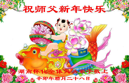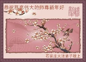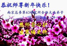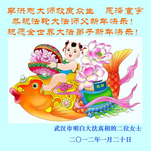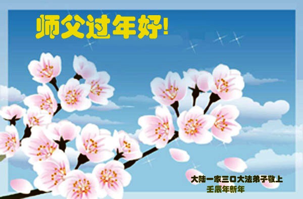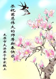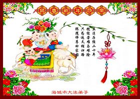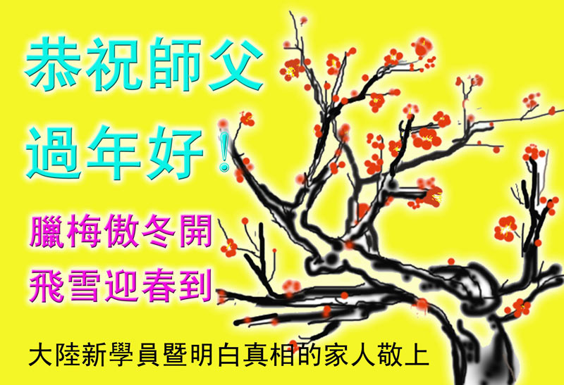 明慧同修好,在新年开始之际请你们替我和我母亲(同修)向师尊拜年。我只想真诚的对师尊说:“师父过年好”。谢谢!