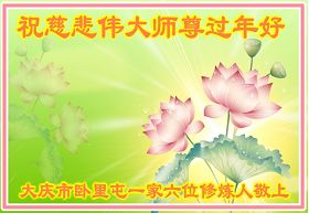 我们一家人都喜得师父救度,母女二人修炼大法,今后我们一家要配合好,做好三件事,多救人,报答师尊的恩情。