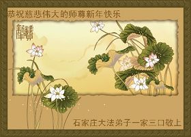 在这里弟子代表家人及身边相信大法的众生向伟大的师尊问一声:"新年好!您辛苦了!"