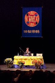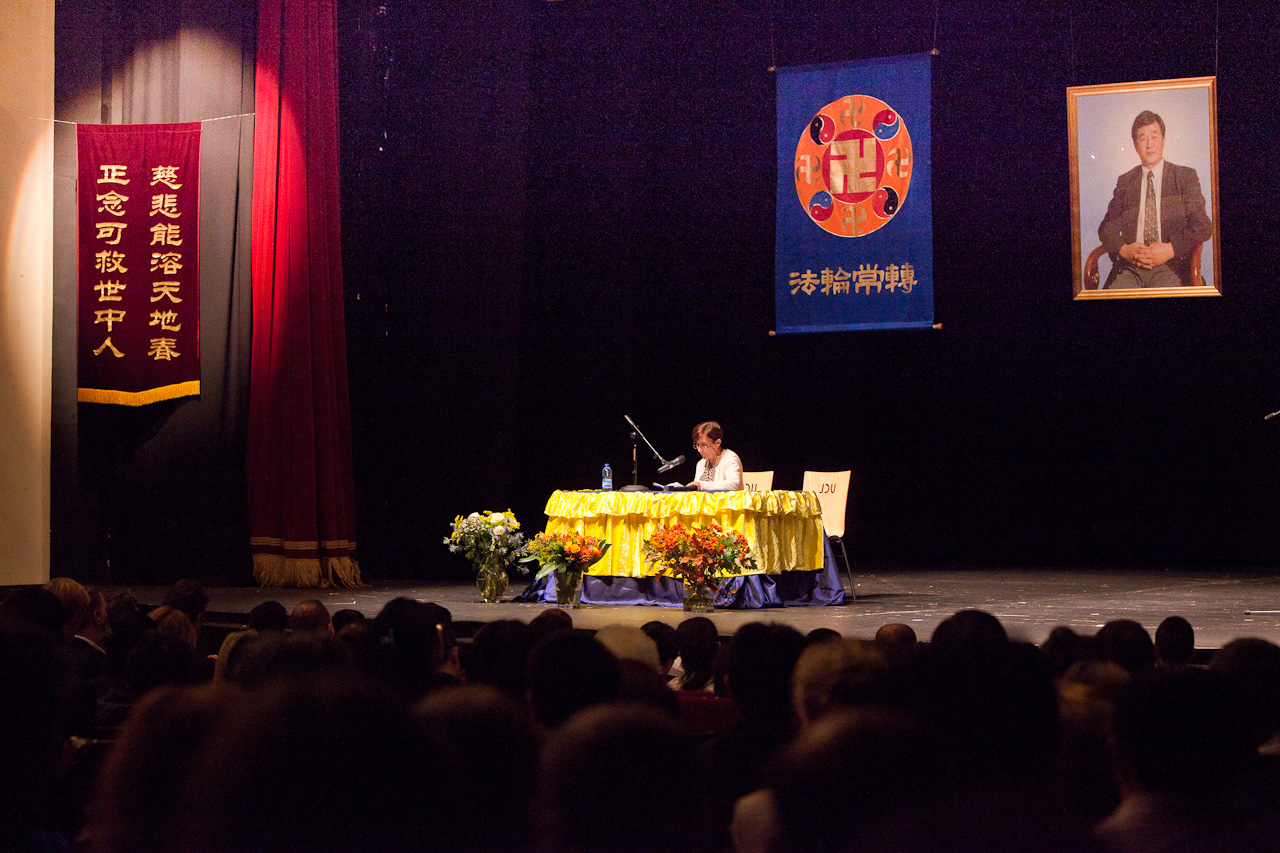 在法会上,一位学员交流了举办“真善忍美展”时的一段感人经历:维也纳的一个画廊主人开始时对这个美展持怀疑态度,因为那些画不是原作,而是复制品。但是当学员们告诉她,他们都是自发自愿、并且是义务地来支持这个画展的,就是因为要将对法轮功的迫害曝光,让更多的人知道真相,站到正义的一边,这时画廊主人转变了态度,同意将场地免费出借将近三个星期来办《真善忍美展》。而且她自己出钱,给她的二千名客户发美展开幕邀请,她还为开幕式准备了饮料和香槟,帮助学员做她所有可以做的。