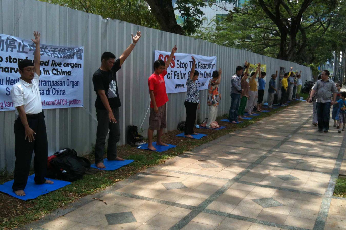 印尼法轮功学员在雅加达中使馆前炼功,抗议迫害