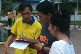 ![]() 棉兰独立公园里,法轮功学员向民众讲真相,征集签名 |