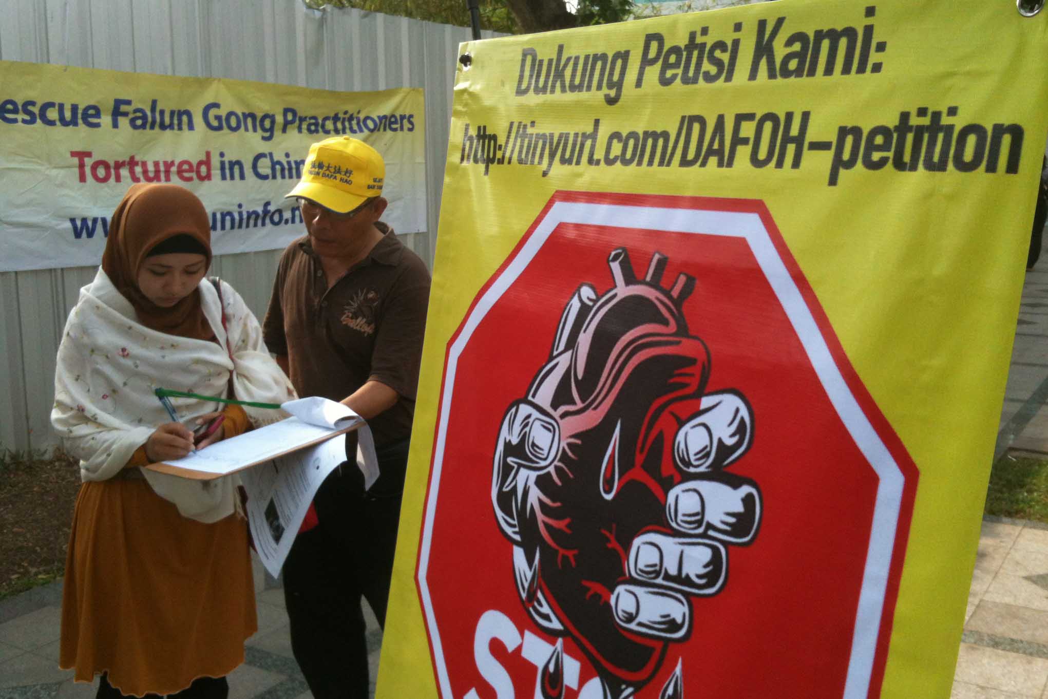 ![]() 雅加达中使馆前,路人签名谴责中共活摘器官 |