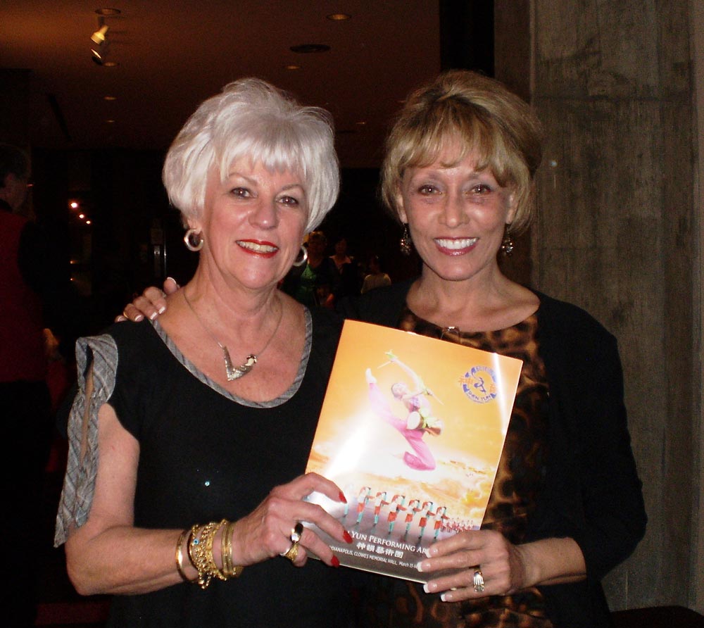 ![]() 琼·卡米(左)和朋友贝弗莉·柯莱波都被神韵的歌曲所打动,并引发对人生的思考 |