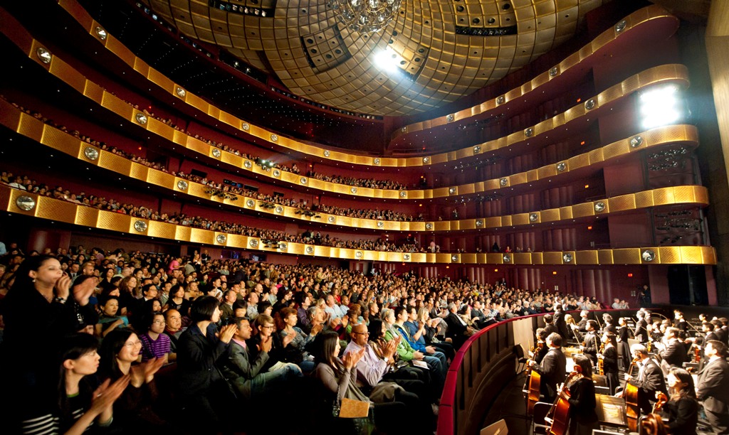 神韵巡回艺术团于四月二十一日,在林肯中心大卫寇克剧院演出爆满的场面。