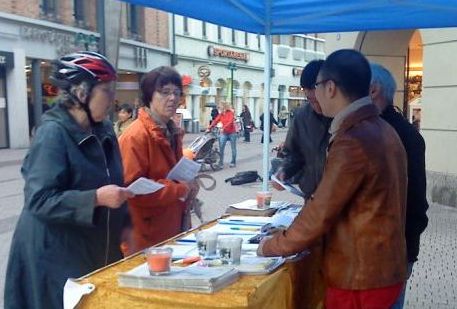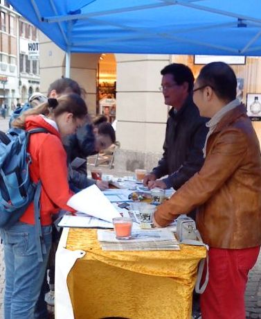 另一位男士表示,他以前住在别的城市,那时曾经接触过法轮功,后来搬到了海德堡。今天又遇到了学员举办的信息日,他马上询问了在海德堡在哪里可以炼功、什么时间等,表示要学功。