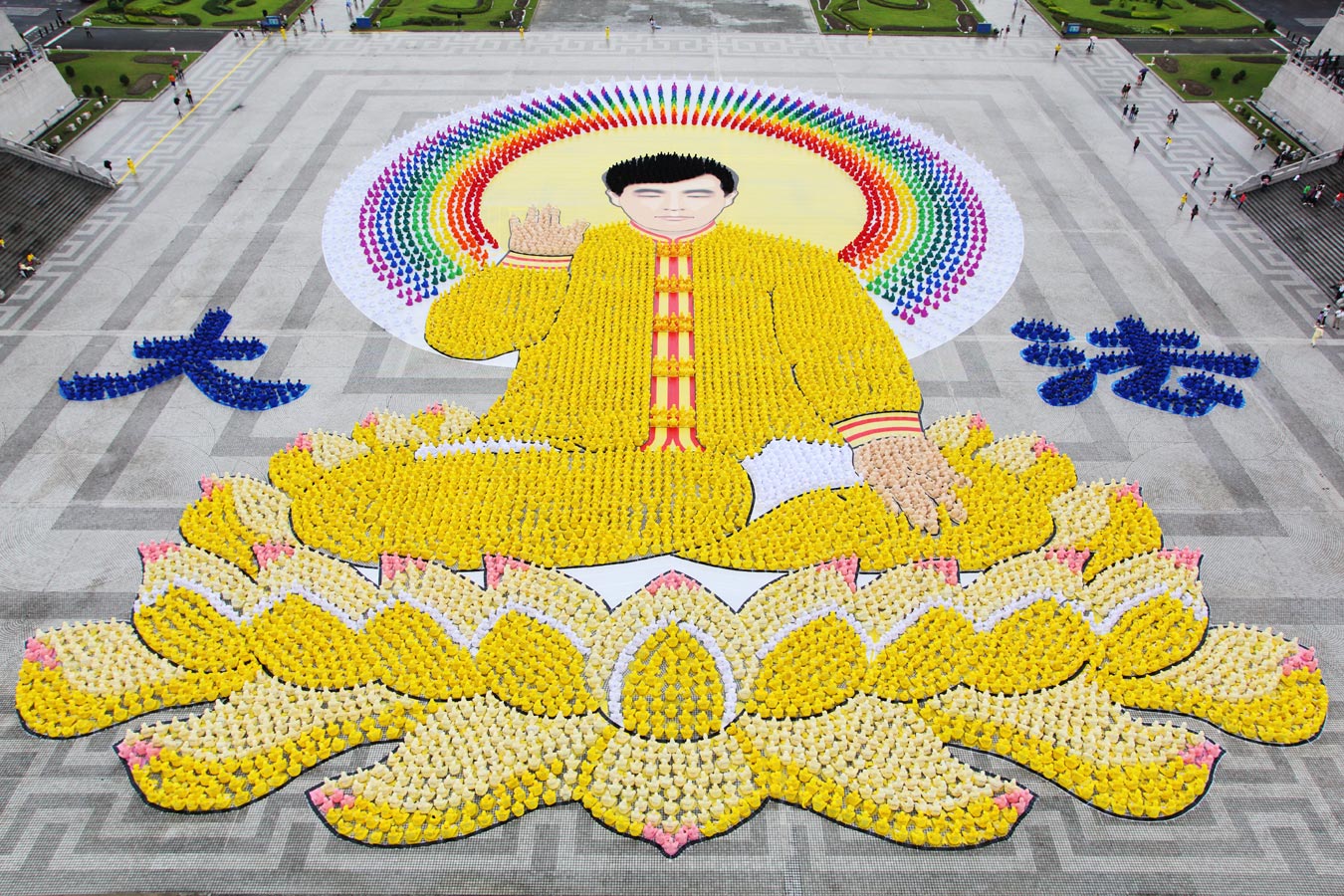 ![]() 台北自由广场前,由七千四百名法轮功学员排出法轮功创始人李洪志先生法像,盛大壮观。 |