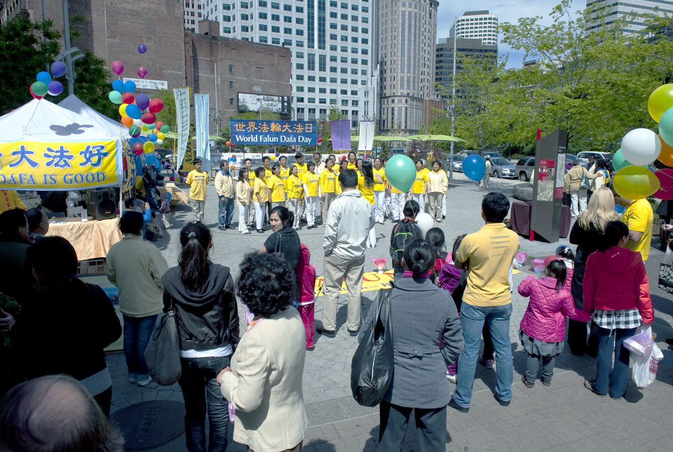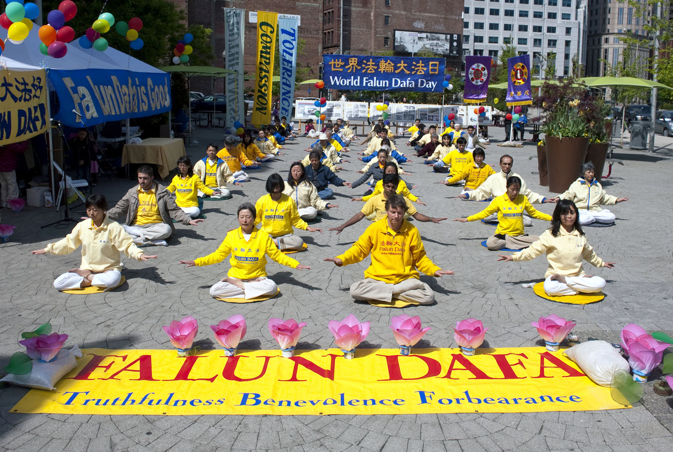 ![]() 波士顿法轮功学员集体炼功洪扬大法。 |